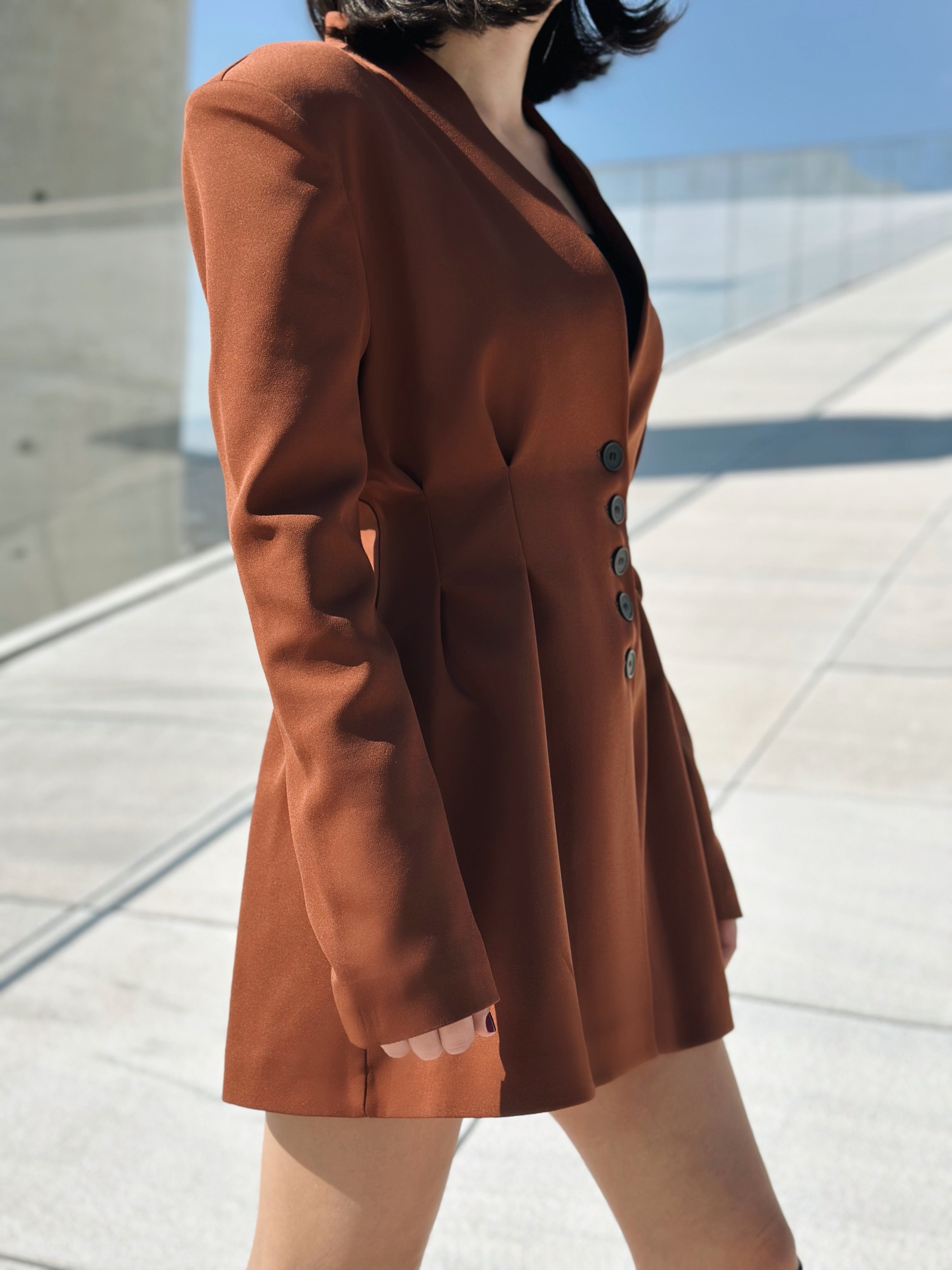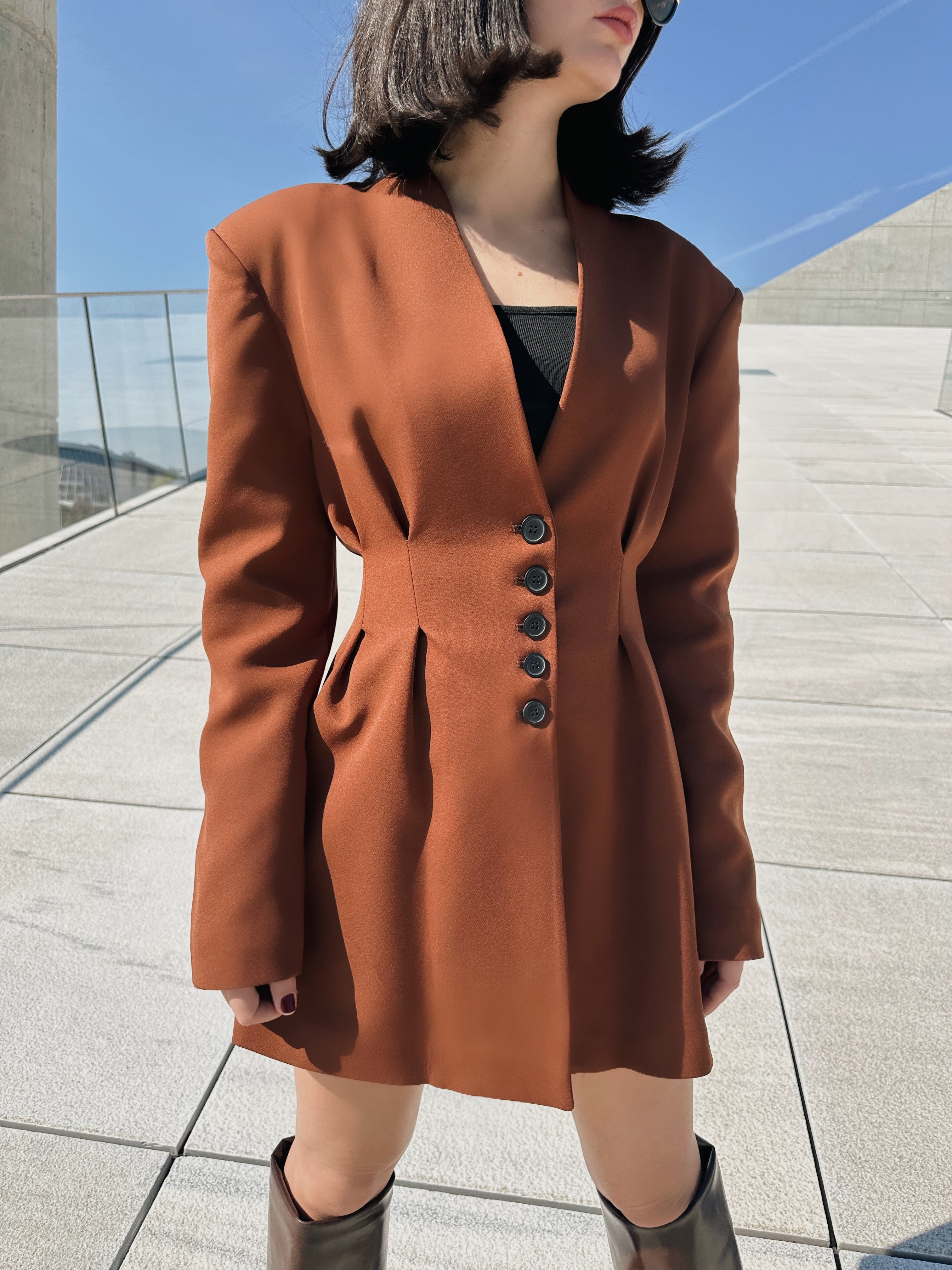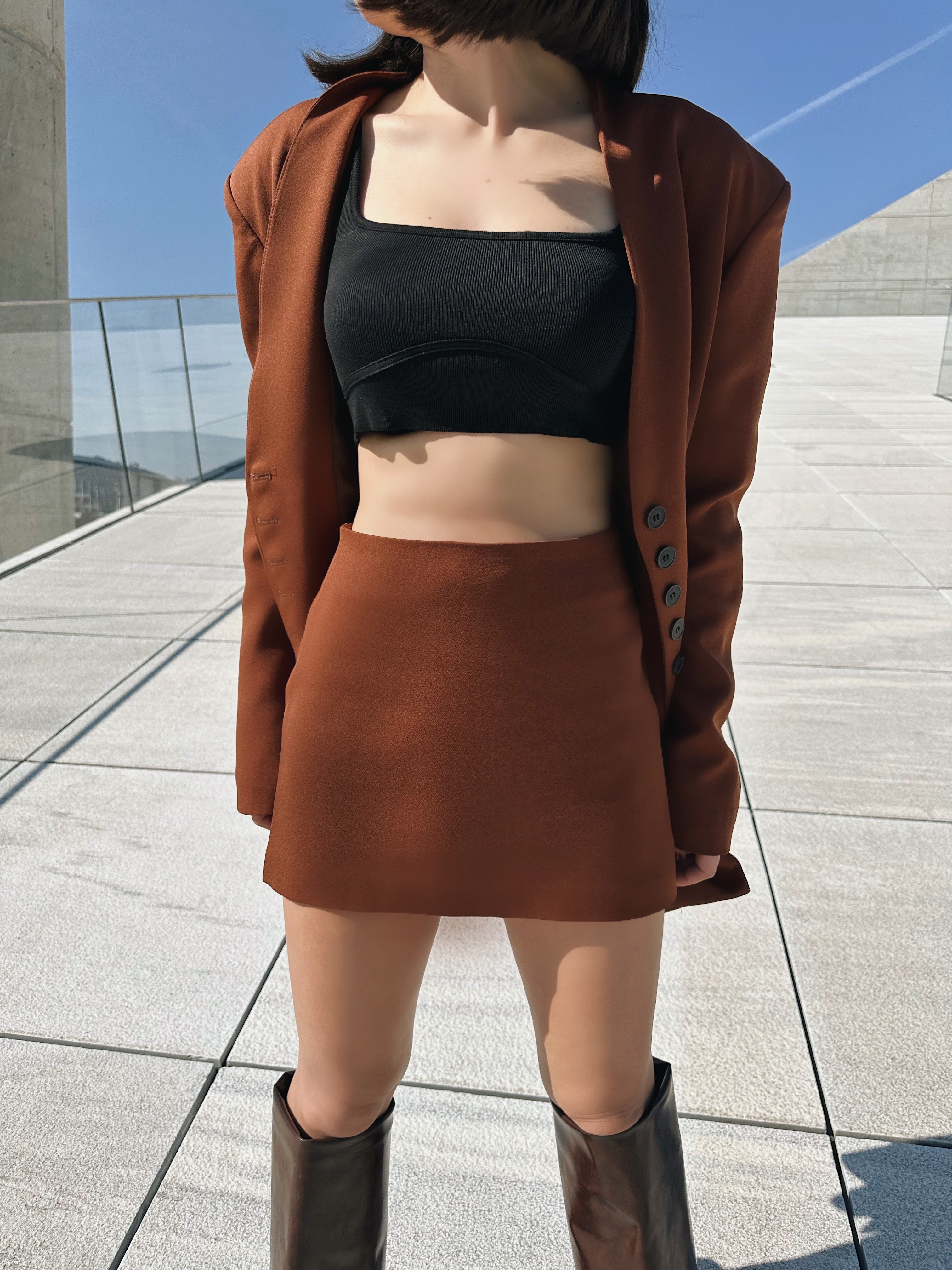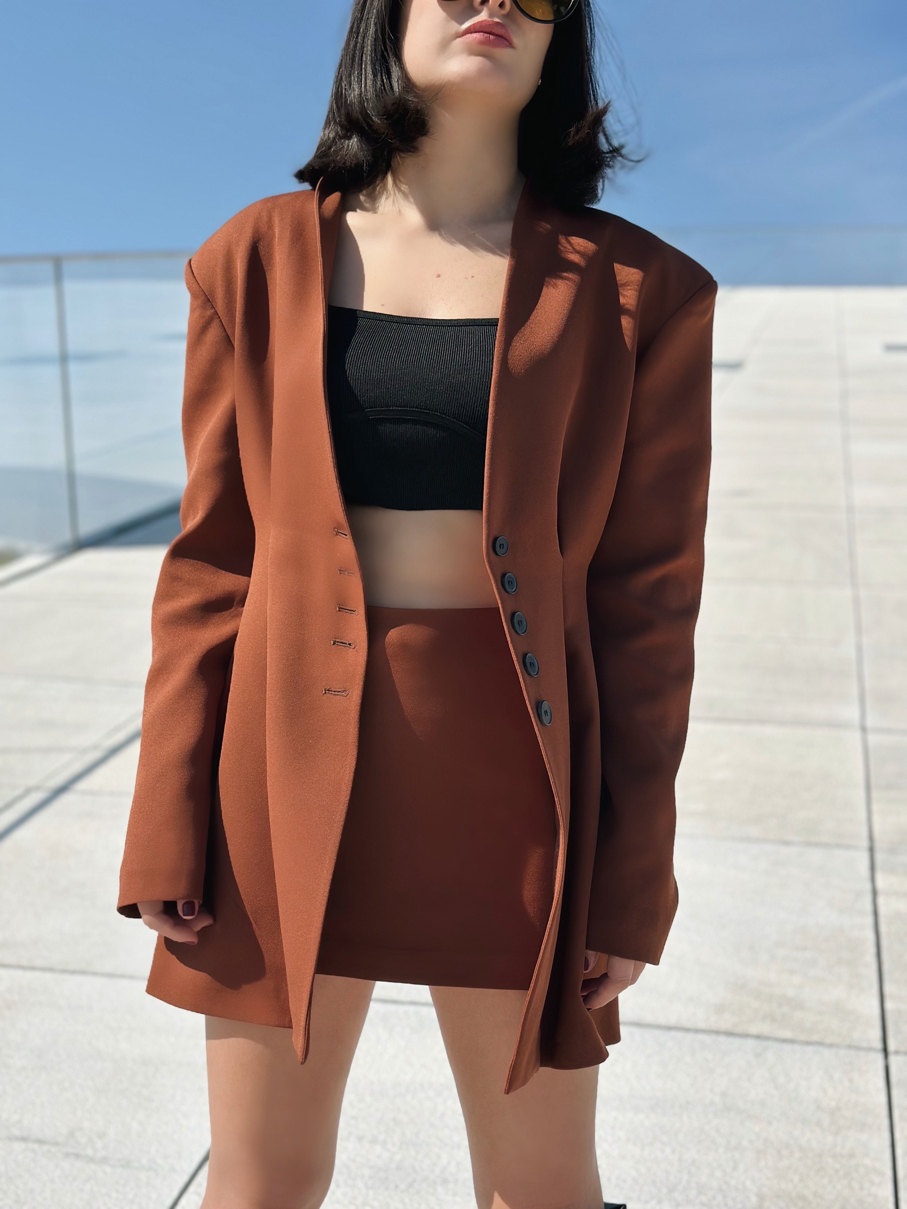 Ürün özellikleri: Vatkalı ,bele oturan ,önden düğmeli uzun v yaka ceket ,mini etek takım.
