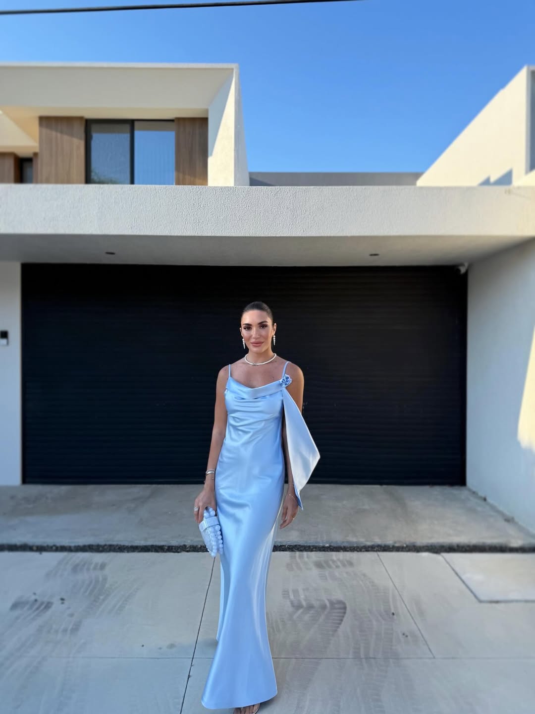 Style Tip : Create a sophisticated evening look with a bun, stone earrings, and strappy heels. Balance your look with a minimal silver-toned clutch.