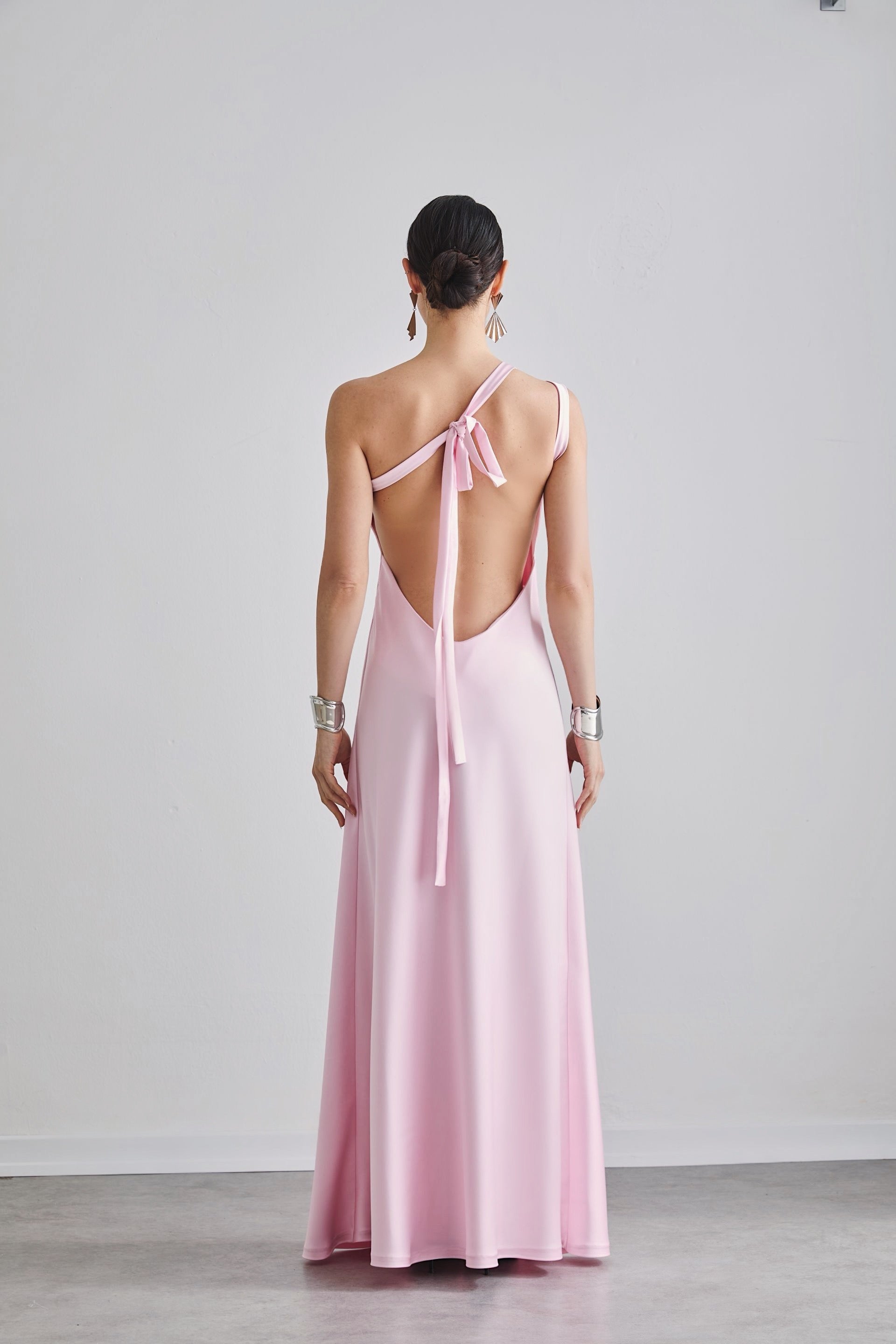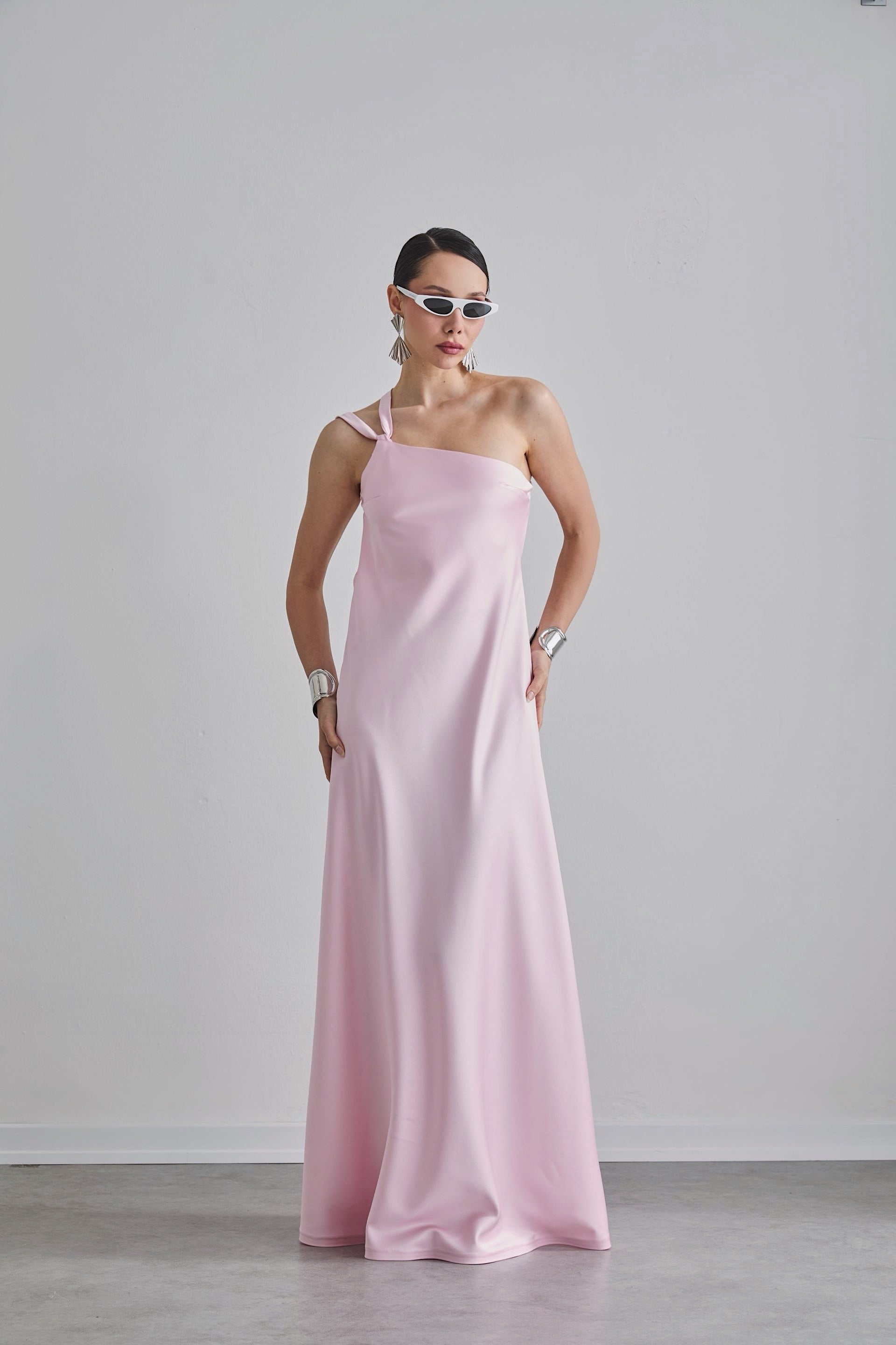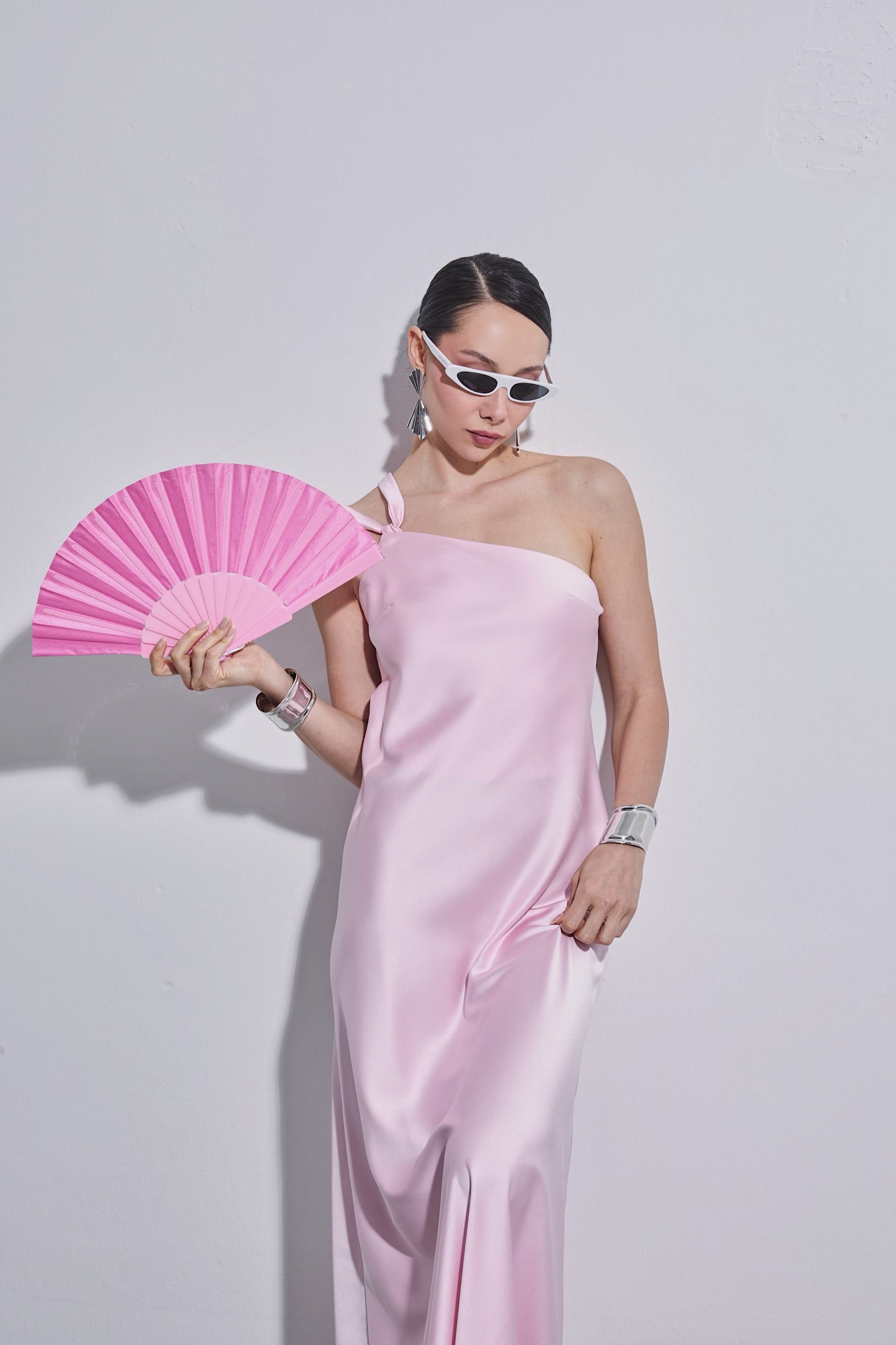 Complete your look with a bun, pearlescent makeup, and dainty stone earrings. Create a modern evening look with minimal heels and a pastel-toned clutch.