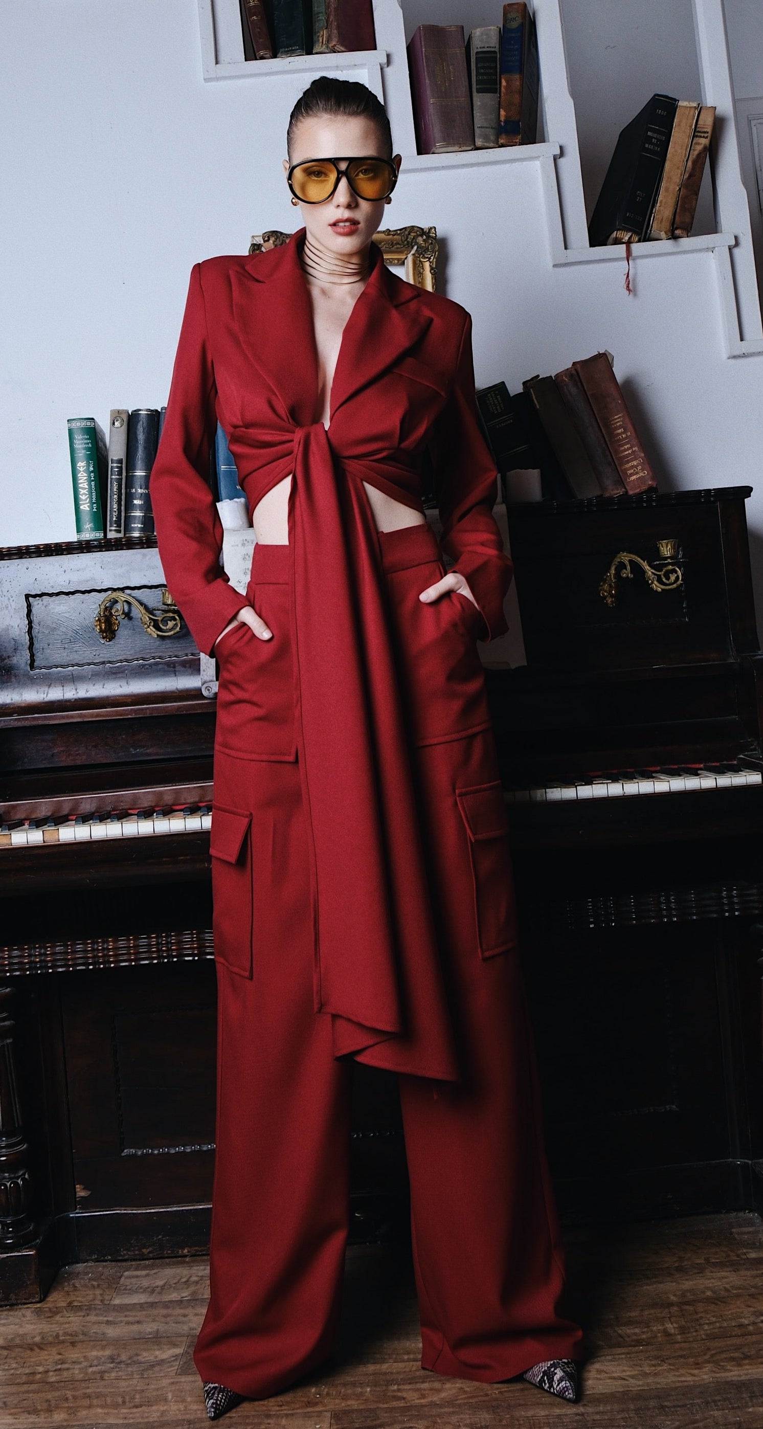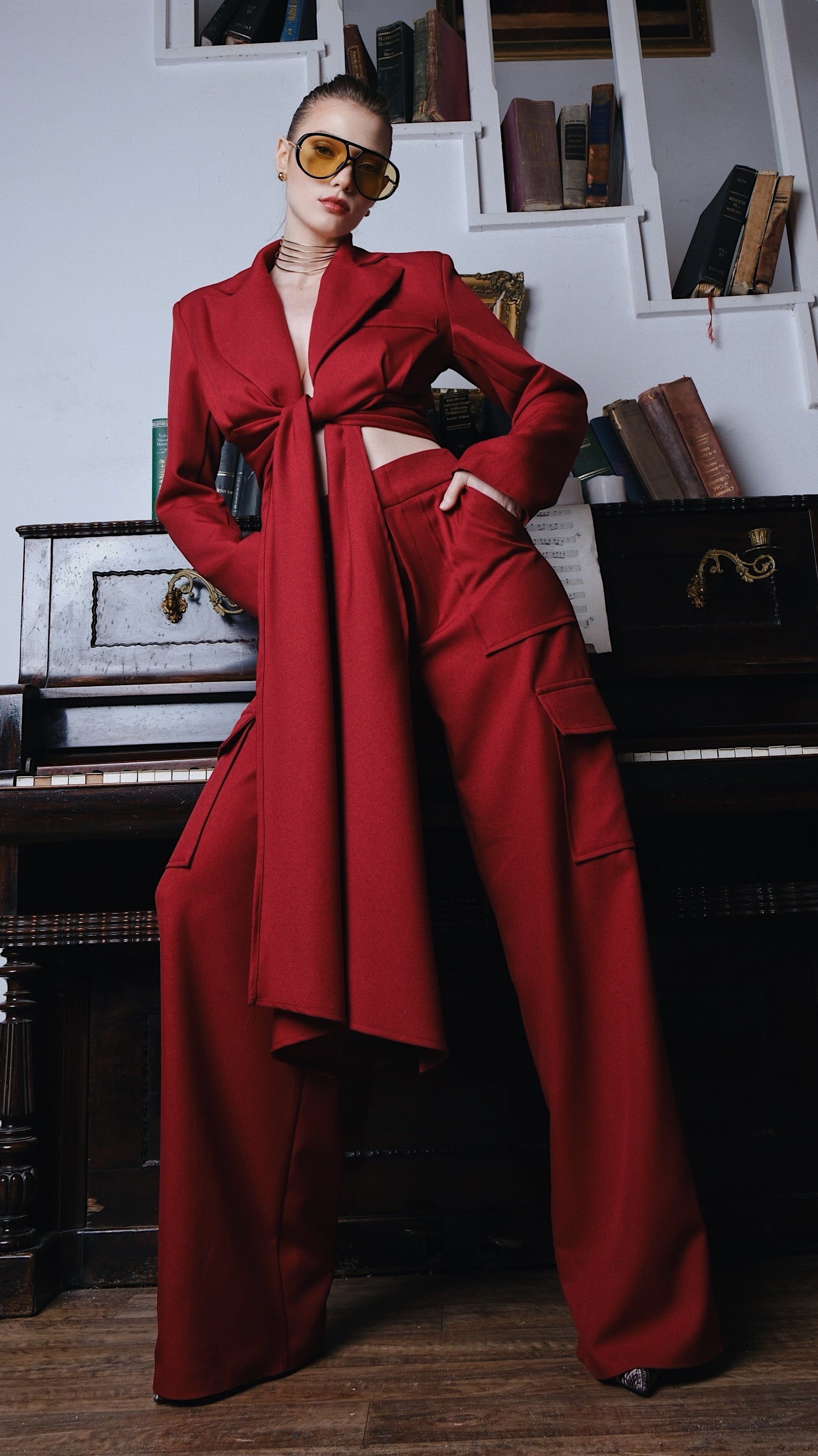 - Ürün özellikleri: Önden uzun kuşaklı ceket,yanları cepli bol paça kargo pantolon. Takım olarak satılmaktadır.